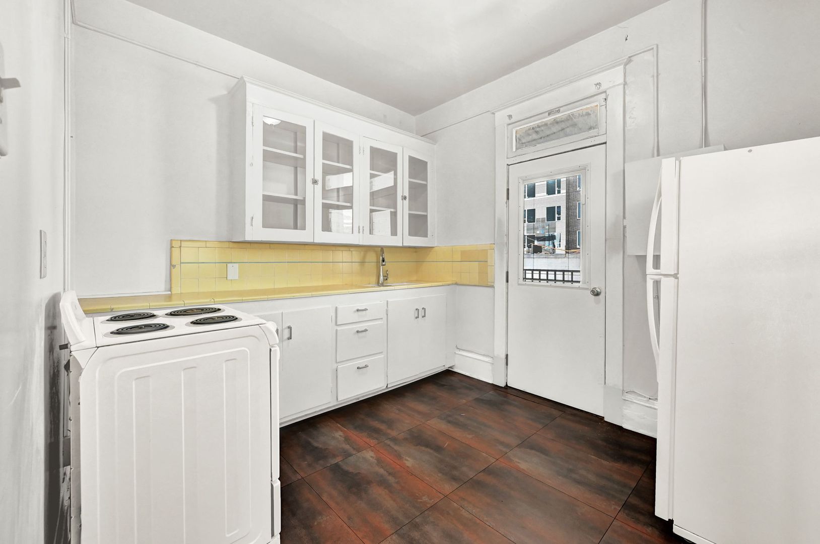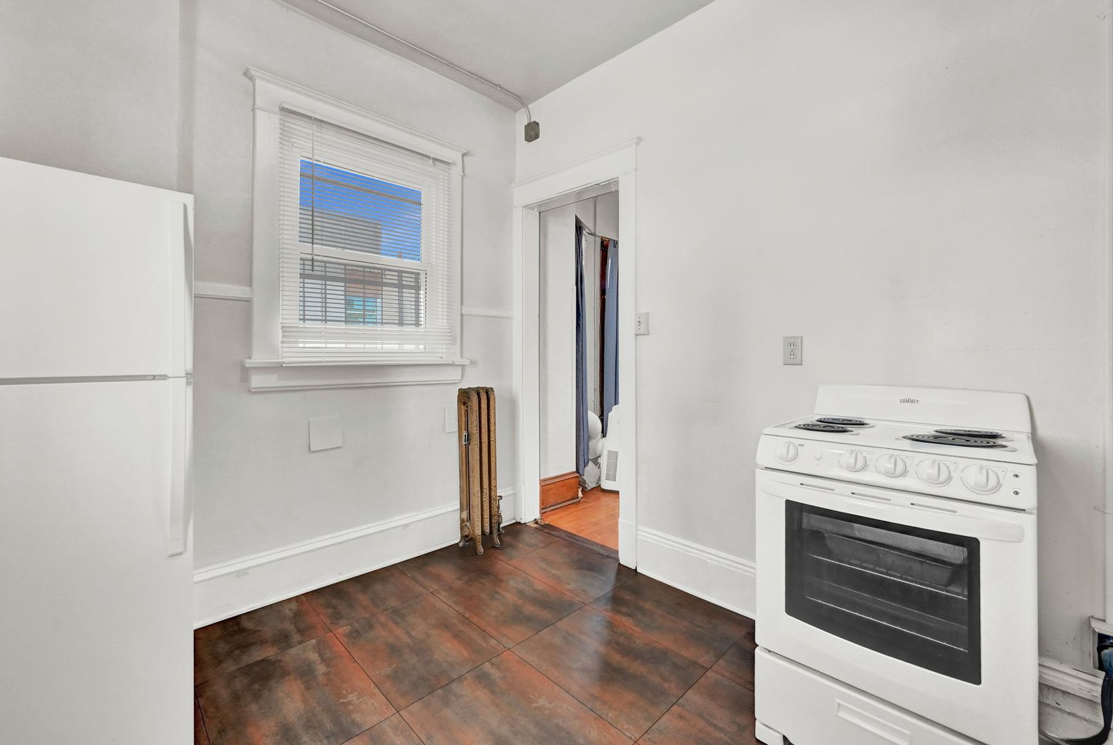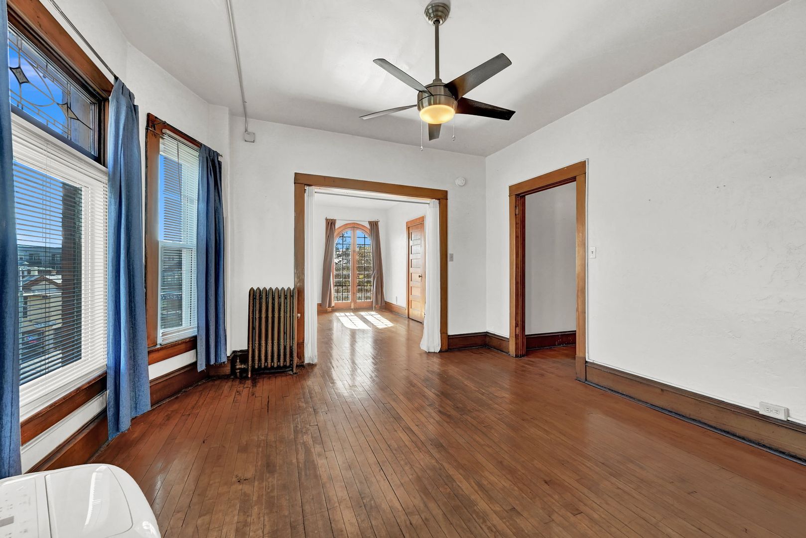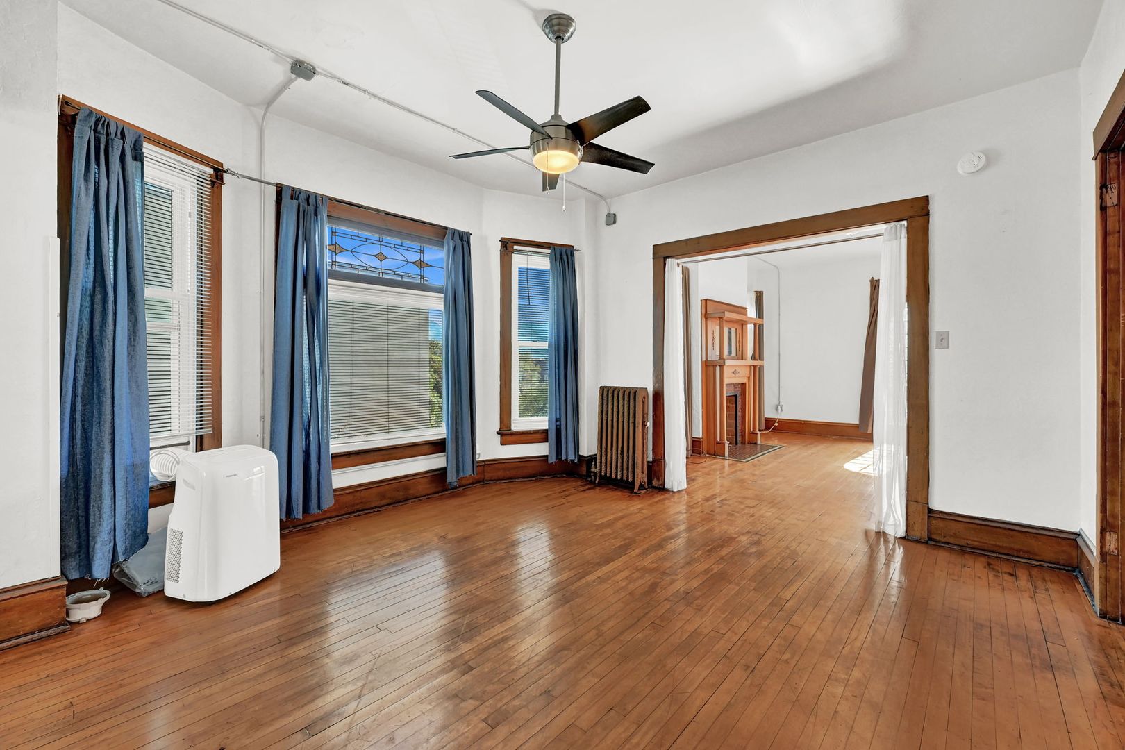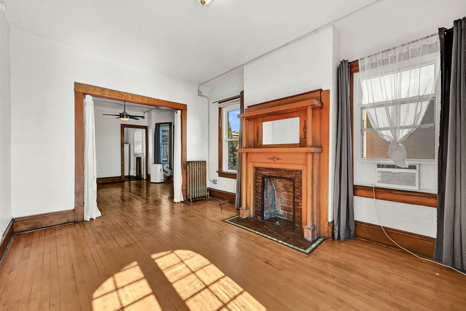 One Bedroom Apartment in Historic Building with Fireplace.