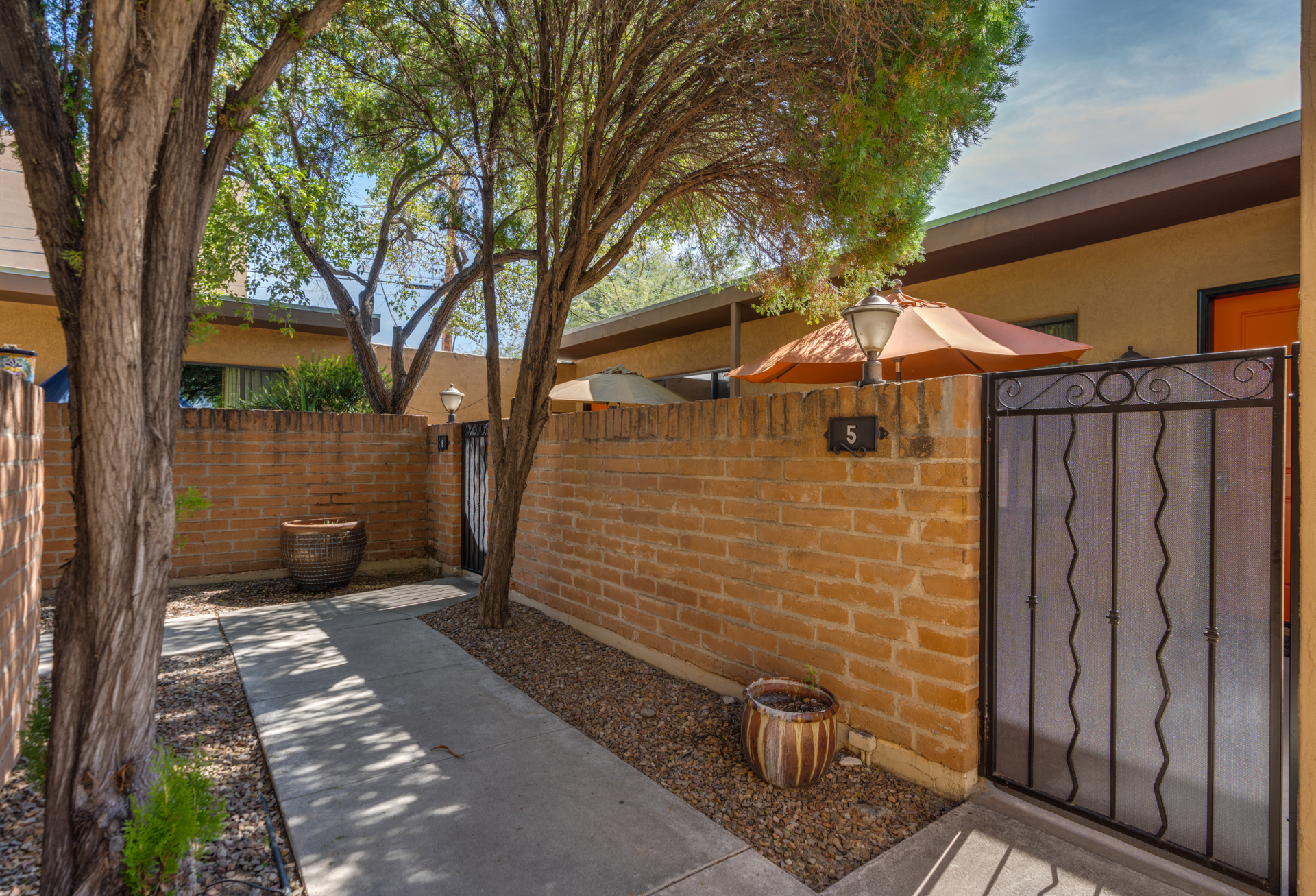 Secure gated entrance with ample parking