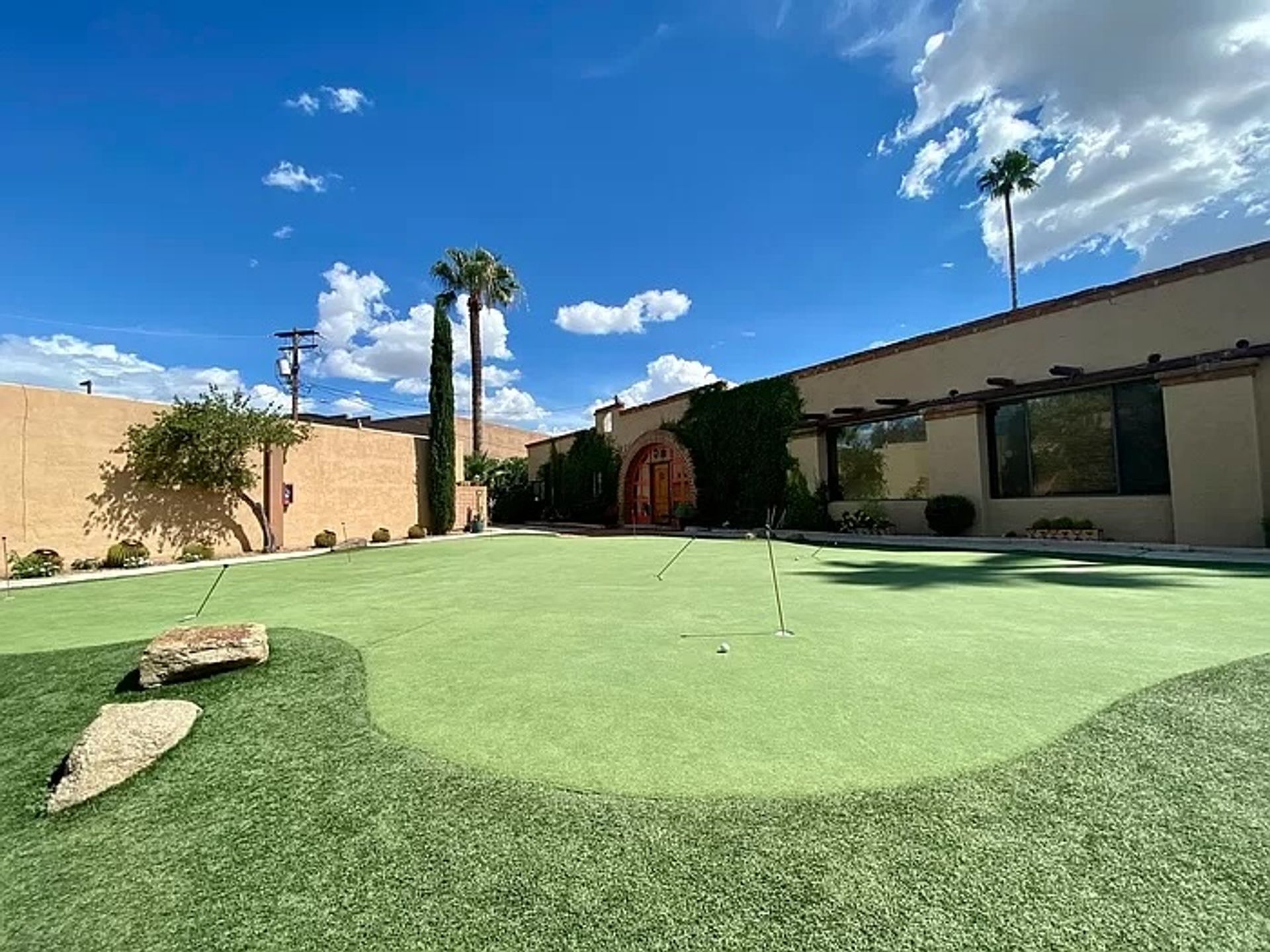 Swimming pool, tennis court, and artificial turf putting green